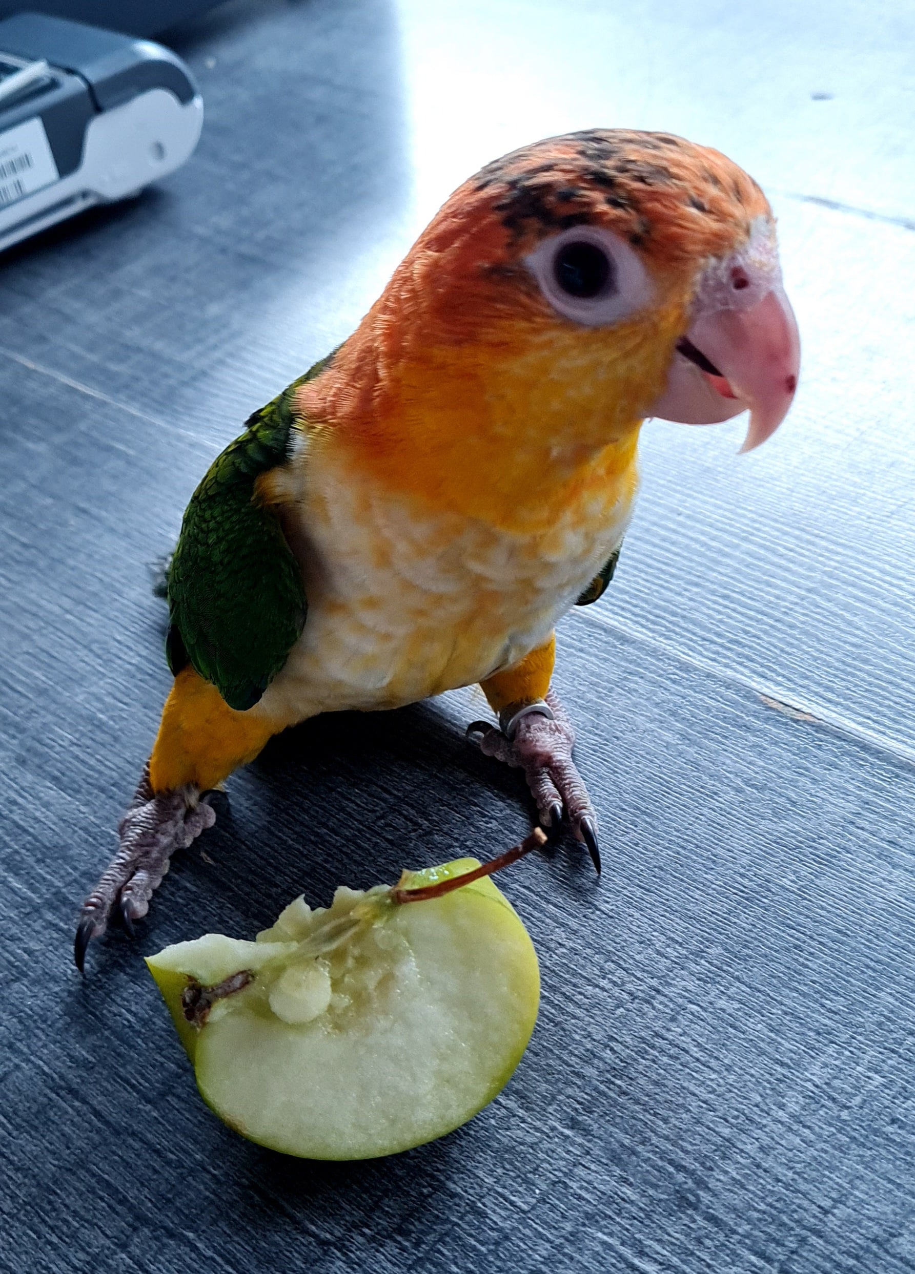 caïque tète jaune ventre blanc