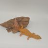 Particularités : Contrairement aux autres geckos, il possède des paupières mobiles et n'a pas de ventouses (lamelles adhésives) sous les pattes, ce qui l'empêche de grimper aux vitres.