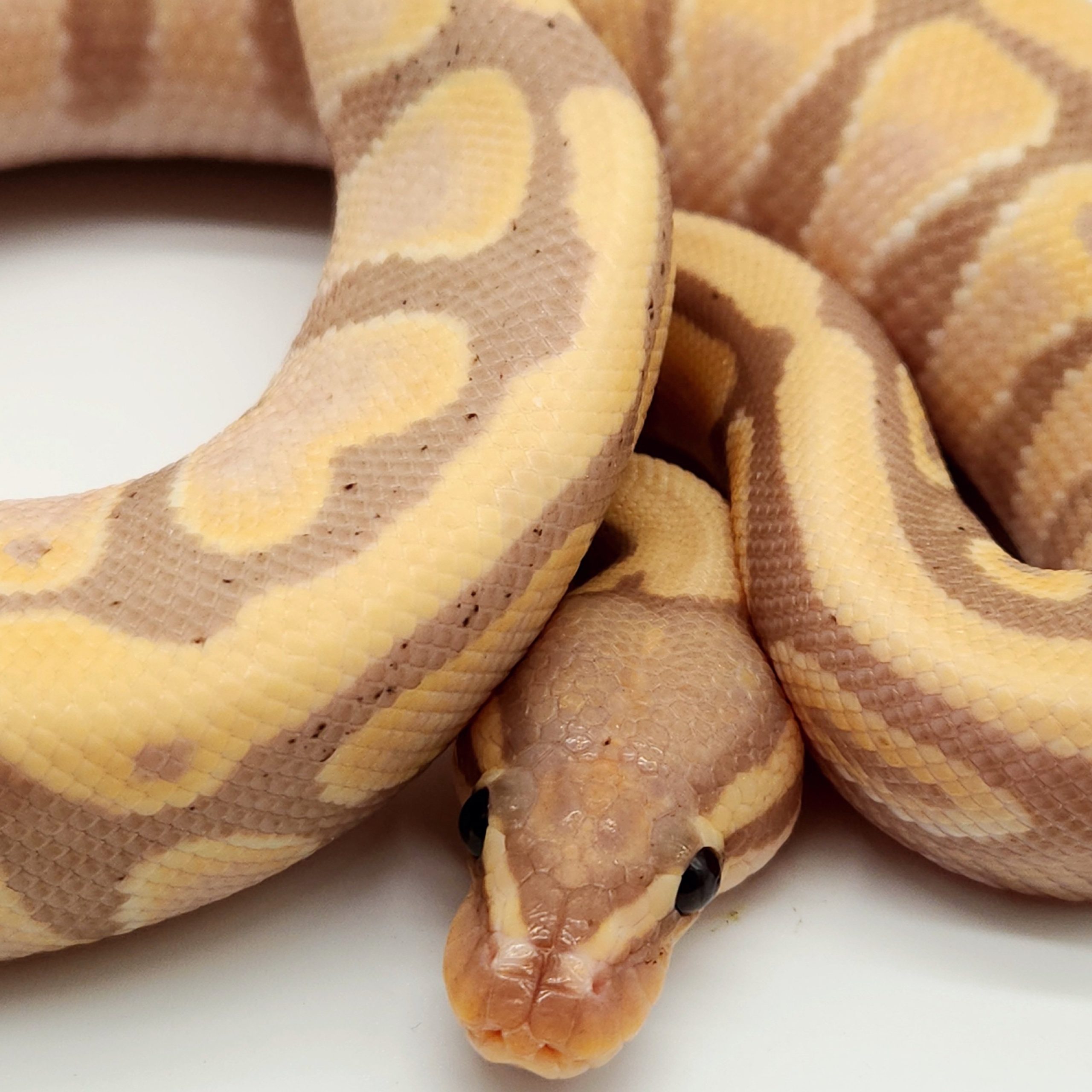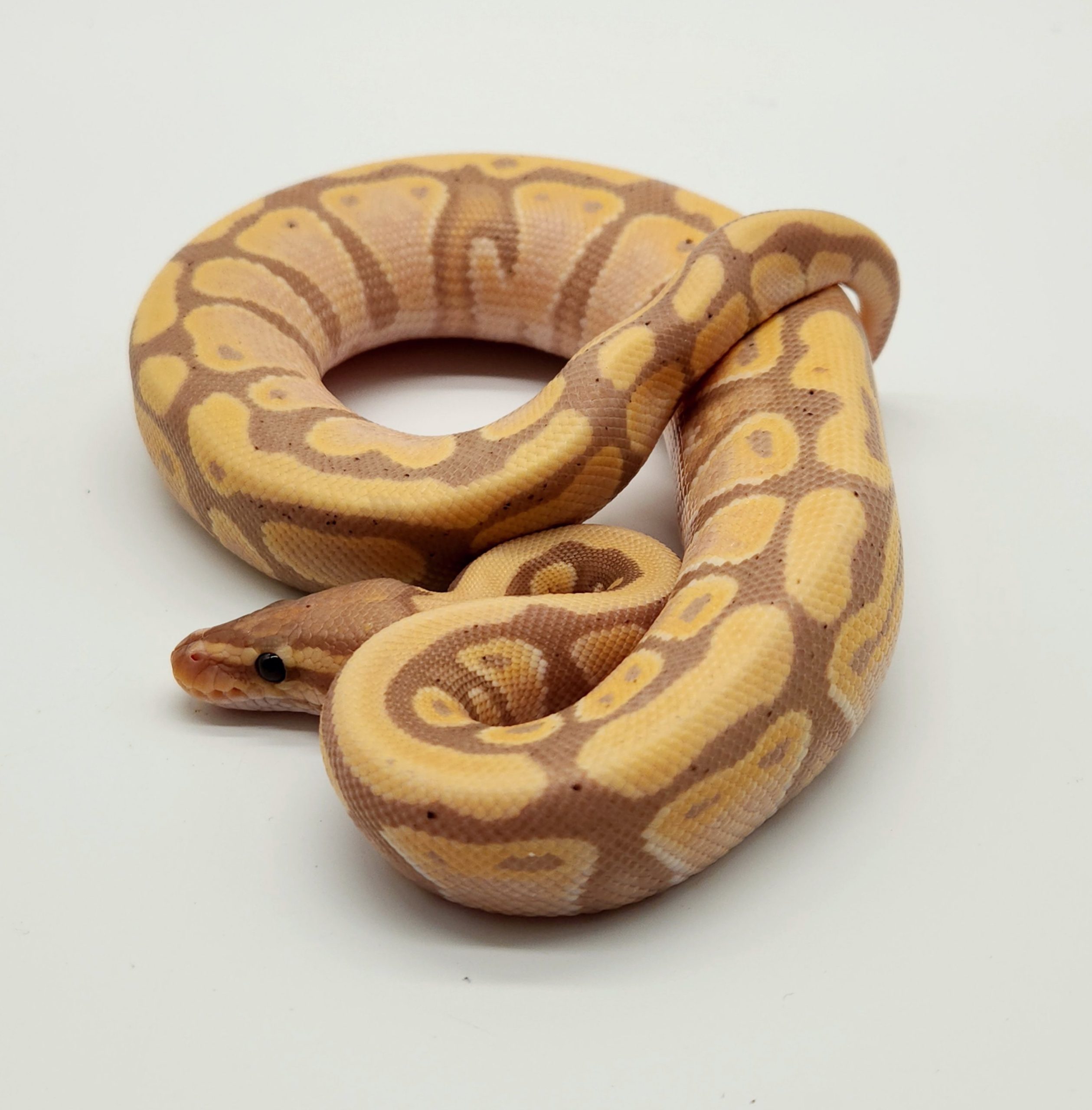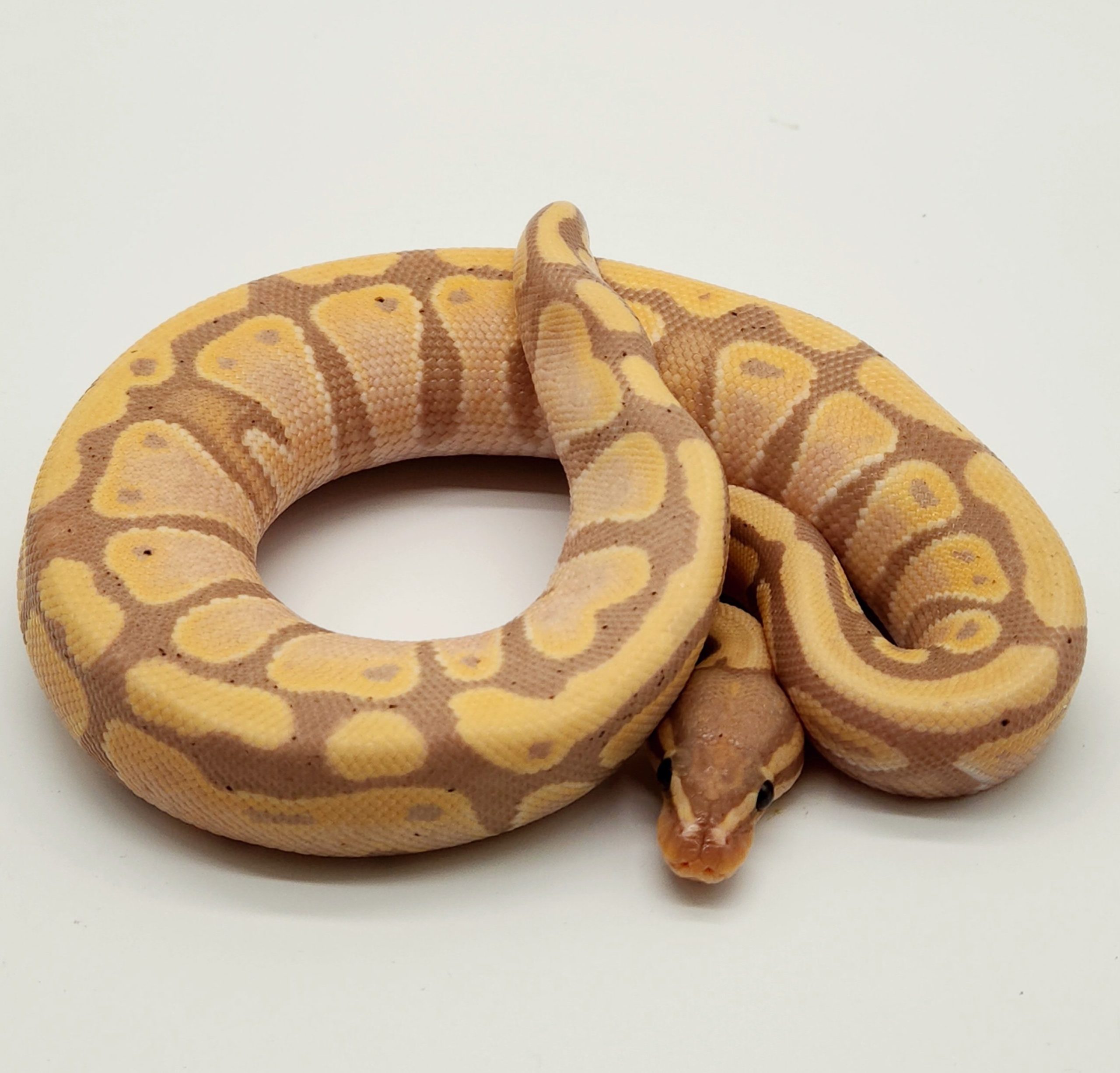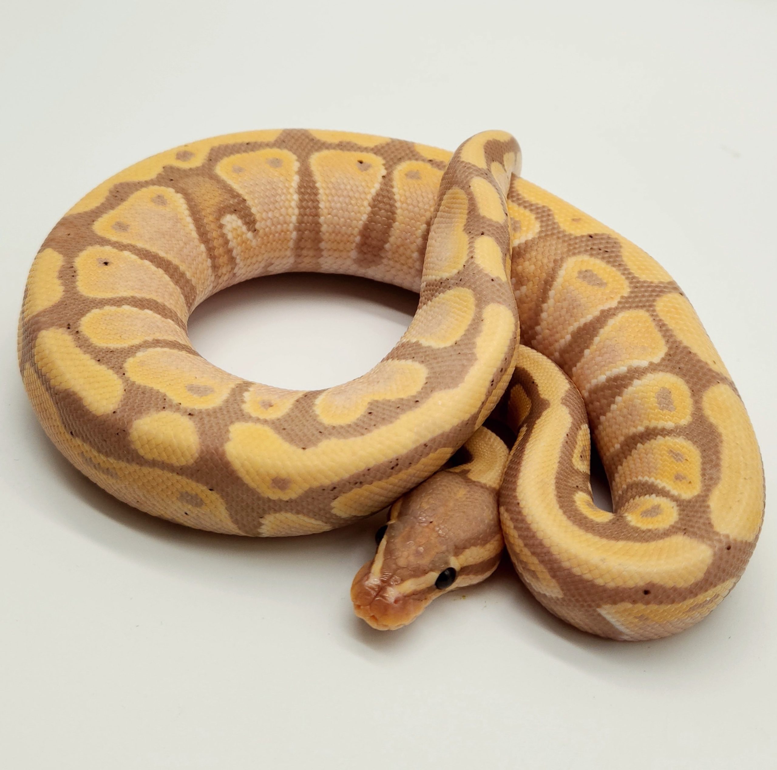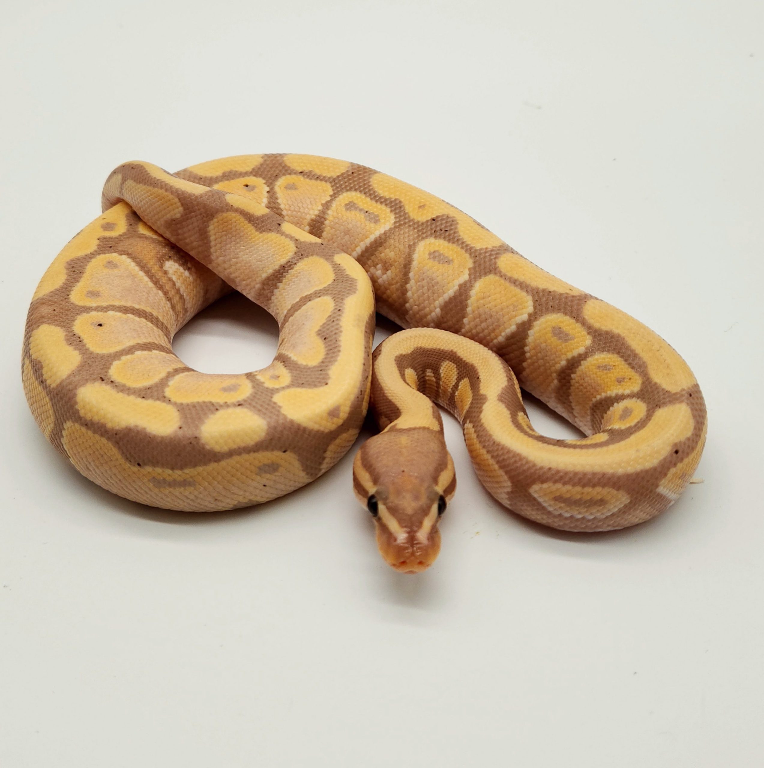 Ce serpent originaire d'Afrique, pouvant mesurer entre 100 et 150 cm une fois adulte, aura besoin d'un point chaud à 29 -32° adulte. Le python royal a une espérance de vie d'environ 30 ans. Il s'agit d'un serpent souvent timide qui a besoin de calme, car il peut rapidement être sujet au stress. Tous nos pythons royaux sont des animaux d'élevage