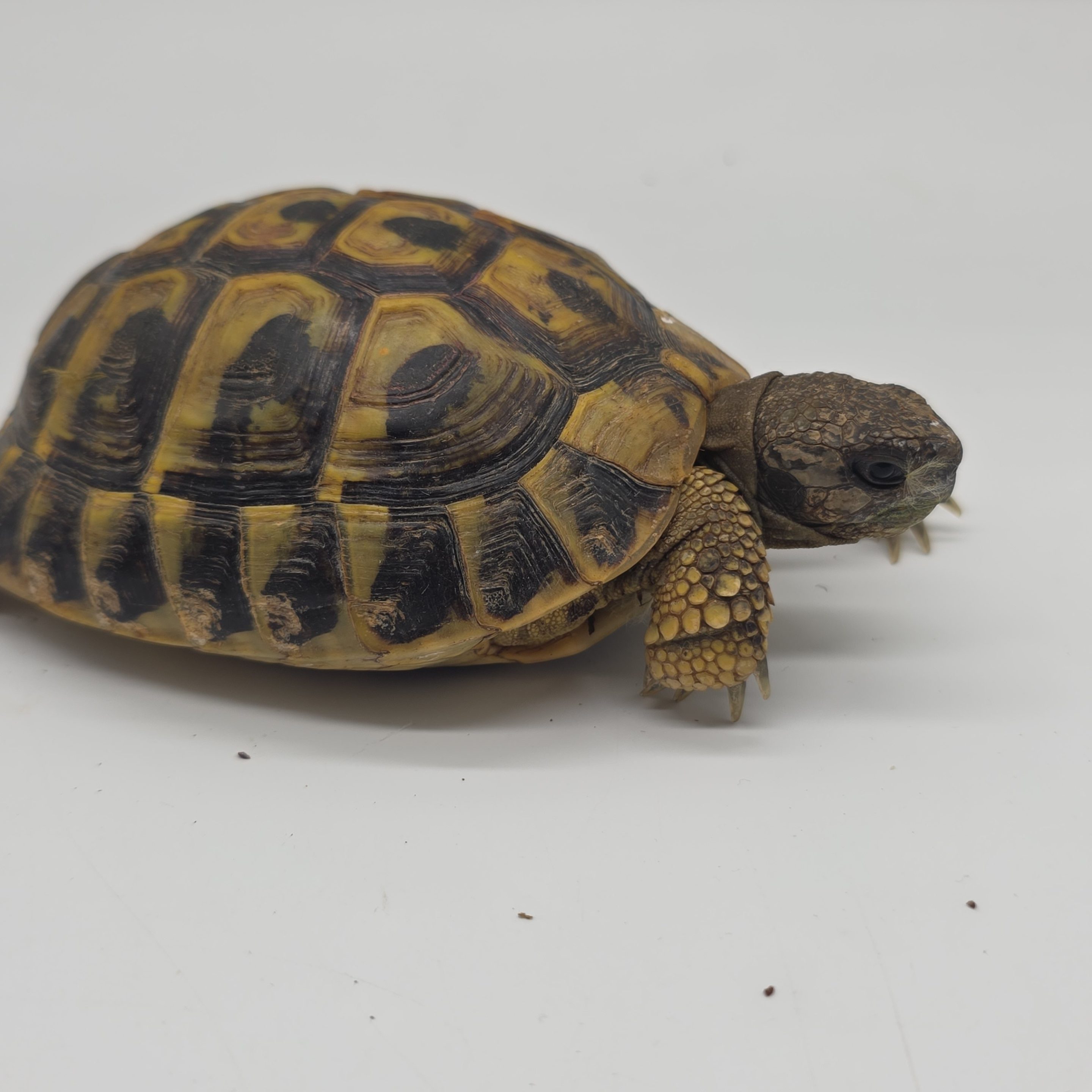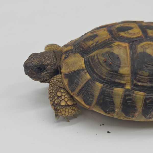 Testudo hermanni boettgeri : Sous-espèce orientale (Balkans, Grèce, Turquie). Elle est nettement plus grande, avec des couleurs plus ternes (jaune olive) et des taches noires fragmentées ou discontinues sous le ventre.